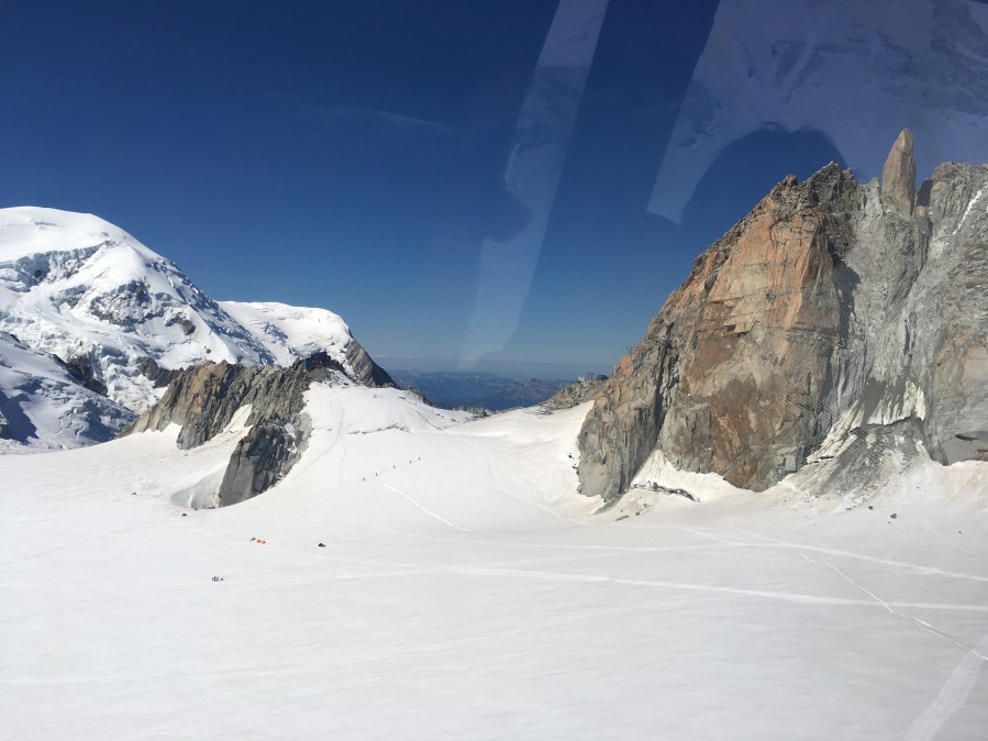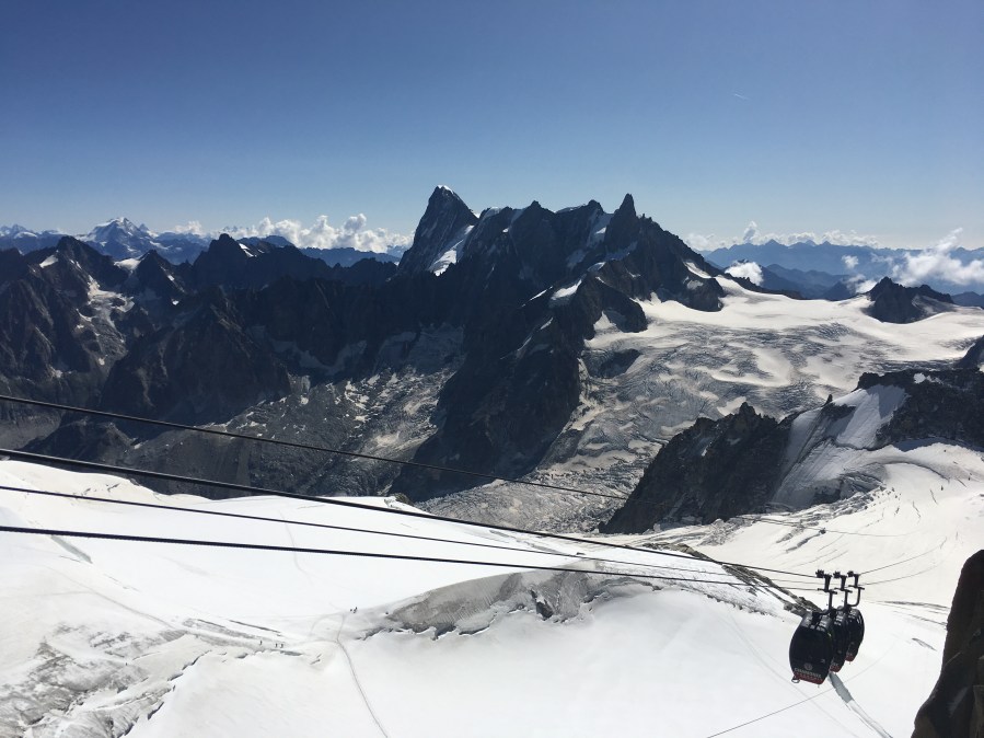 Simon then announces that he thinks it’s a good idea to do the extra little cable car that takes you on a round trip to see the peak of Mont Blanc and links up with the cable car that comes up from the Italian side. The border between the 2 countries runs through the summit so they can both claim ownership apparently.