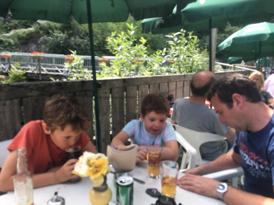 Our final day in Chamonix was a train in the other direction and a hike to a waterfall with a cafe. Brilliant fun.